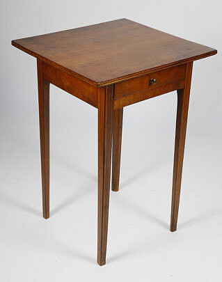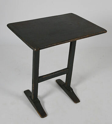 American Gray Stain Side Table with Bread Board End Top, circa 1800