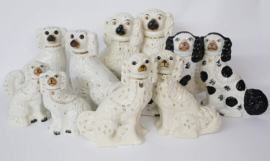 Five Pairs of Staffordshire King Charles Spaniels, 19th Century