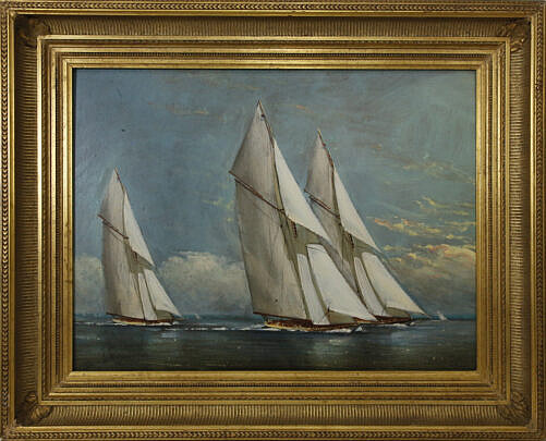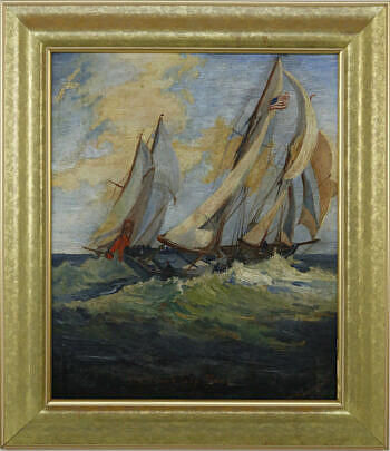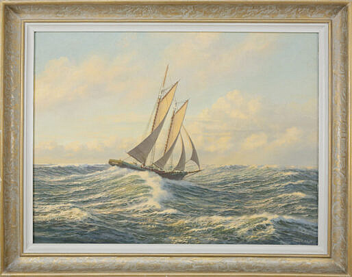 William Lowe Oil on Linen “Schooner off Nantucket Yacht Club”