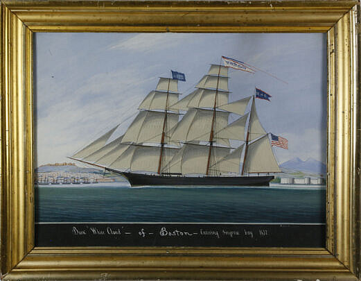 Raffaele Corsini Watercolor “Portrait of the Bark ‘White Cloud’ of Boston Entering Smyrna Bay, 1857