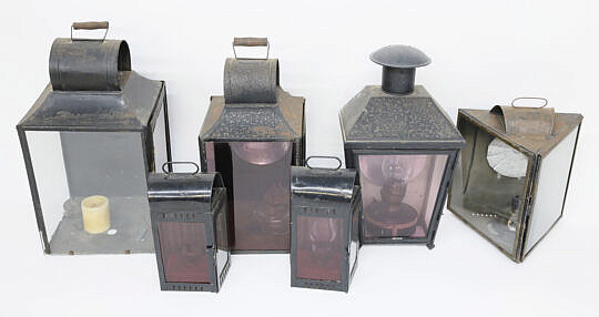 Six Carrying and Hanging Tin Lanterns Collection, 19th Century