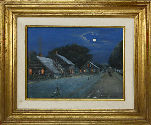 Michael Matthews Oil on Canvas “Moonlight Village Street Scene”