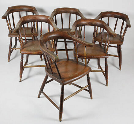 Set of Six Barrel-Back Tavern Chairs, 19th Century