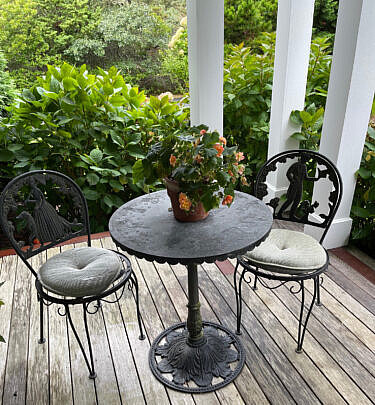 Vintage Zodiac Engraved Metal Bistro Table and Figural-Back Side Chairs