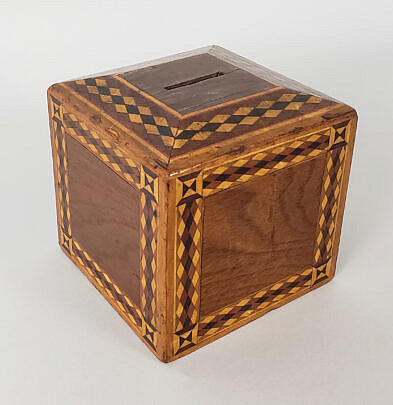 Diamond, Spade, Heart and Club Multi-Wood Inlaid Card Box