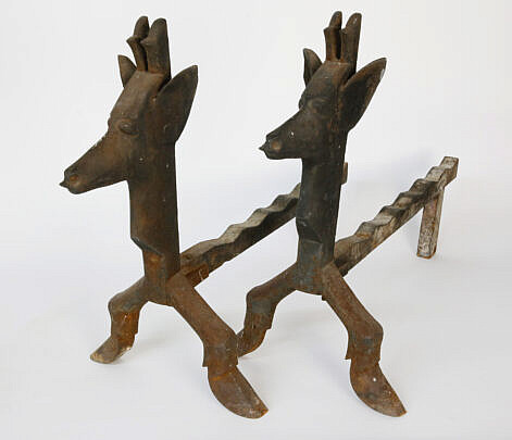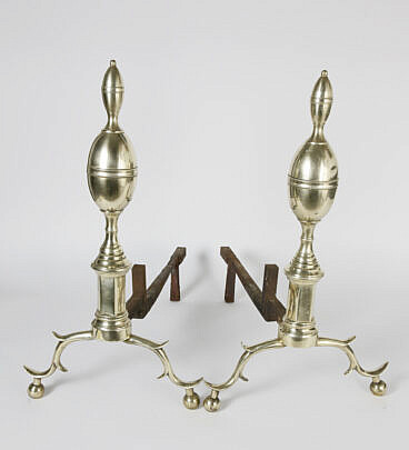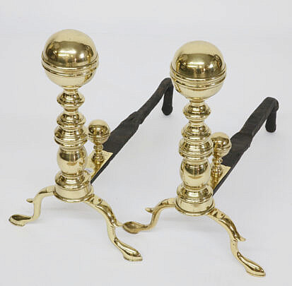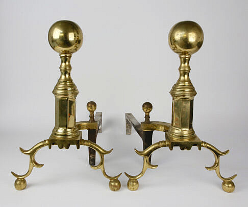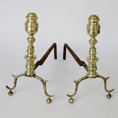 Pair of Multi-Turned Brass Andirons, 19th Century