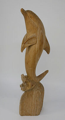 Val Robbins Relief Carved Black Walnut Display Stand, titled “Whales Eye View”