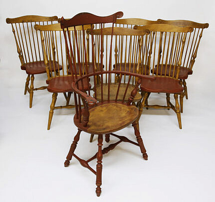 Set of Eight Reproduction Nantucket Fan Back Windsor Dining Chairs