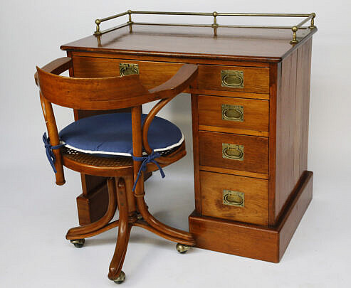 Teak and Mahogany Ship’s Cabin Desk and Chair