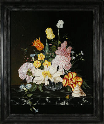 Irmgard Arvin Oil on Panel “Tabletop Floral Still Life in a Crystal Bowl”