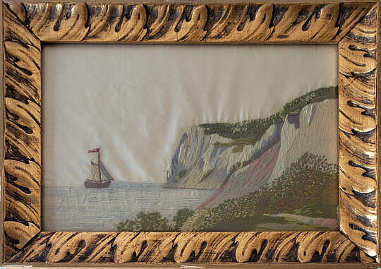 Floral Needlework Embroidery on Silk, early 19th Century