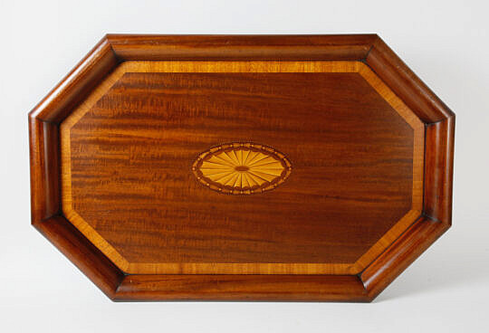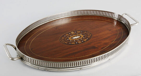 Vintage Inlaid Mahogany and Silver Plated Serving Tray