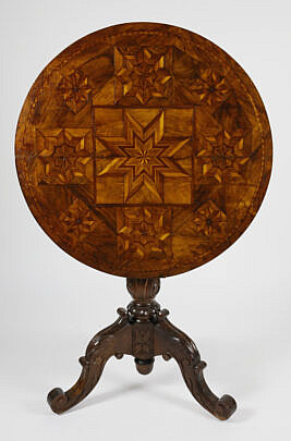 Antique Folk Art Parquetry Inlaid Checkerboard Top Side Table