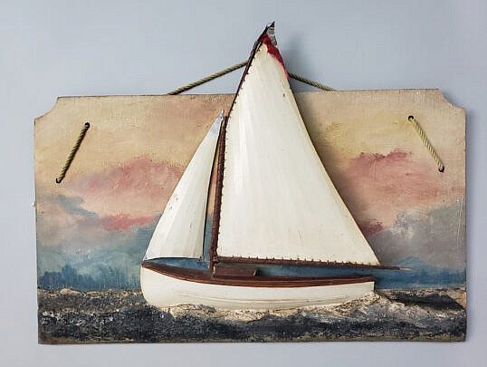 Vintage Yacht Half Hull Plaque on Mahogany Panel
