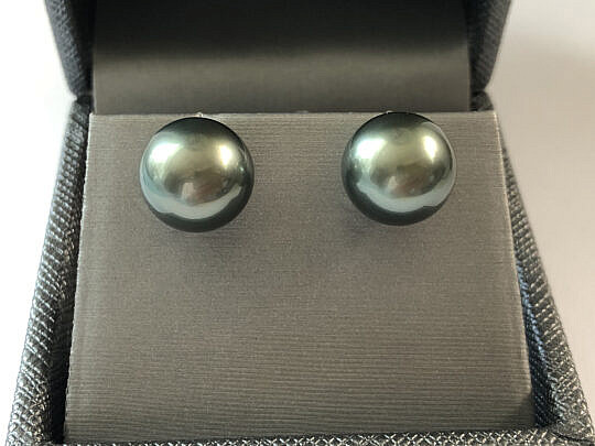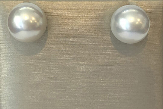 Fine 12.1mm White South Sea Pearl Earrings, 14k White Gold Posts and Backs