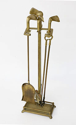 Five-Piece Brass “Golf Club” Fireplace Tool Set