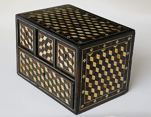Indo-Portuguese Marquetry Inlaid Contador Box, 17th / 18th Century