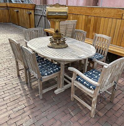 Teak Wood Oval Dining Table and Six Chairs