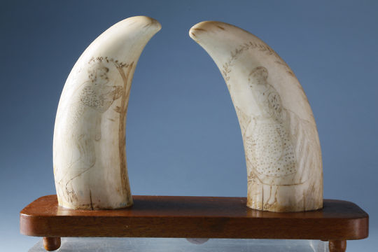 Pair of Antique Scrimshaw Sperm Whale Teeth, circa 1850