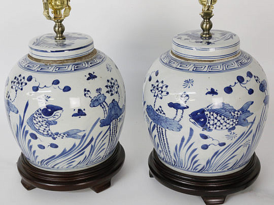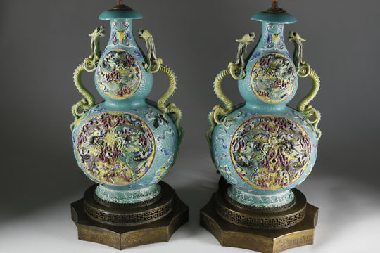 Pair of Chinese Porcelain Embossed Lamps, circa 1880