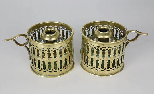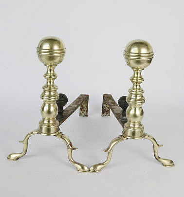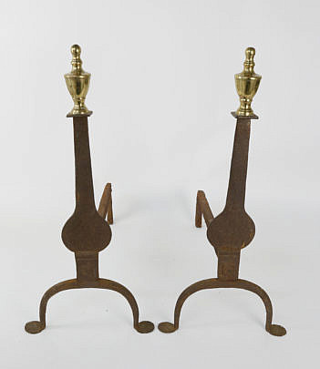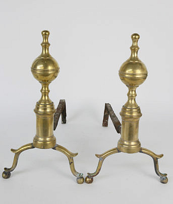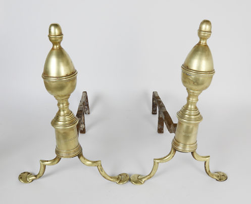 Pair of Brass and Iron Philadelphia Double Acorn Andirons, circa 1800
