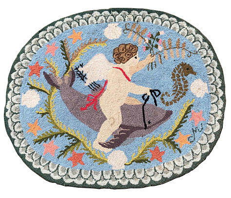 Claire Murray Oval Hooked Rug “Cupid Riding a Dolphin”