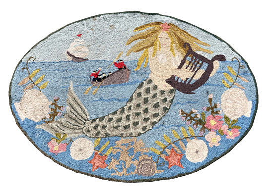 Claire Murray Oval Hooked Rug “Mermaid and Approaching Sailors”