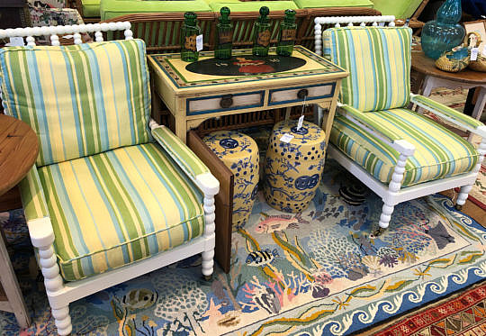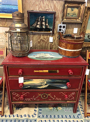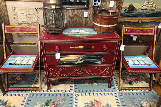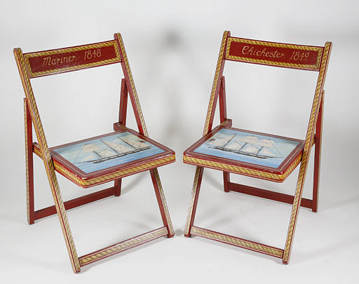 Pair of Red Hand Painted Nautical Theme Folding Chairs