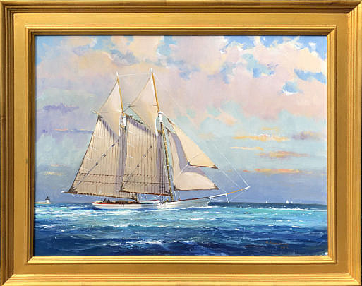 William Lowe Oil on Canvas “Old Timer Departing Nantucket Harbor”