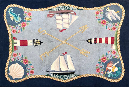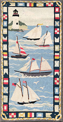 Claire Murray “Lighthouse and Sailboats” Hooked Rug