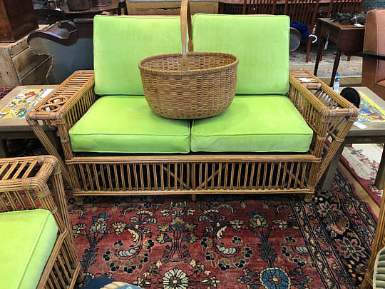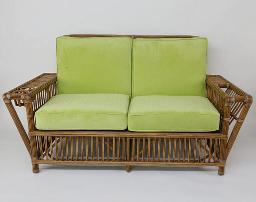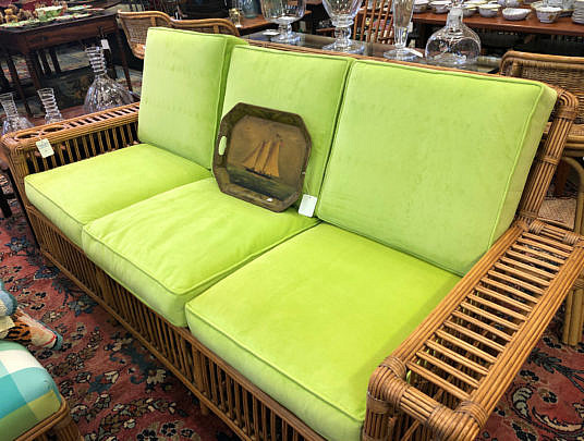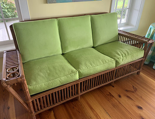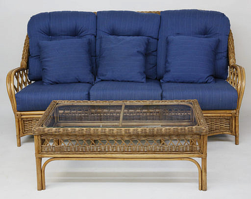 Braxton Culler Rattan Sofa and Glass Top Coffee Table