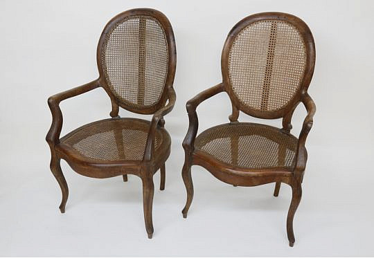 Pair of 19th Century Louis XV Teakwood Open Armchairs