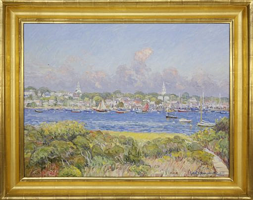 Jan Pawlowski Oil On Canvas “Panoramic View of the Town Of Nantucket From Monomoy”
