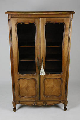 French Carved Fruitwood Louis XVI Style Glazed Door Cabinet