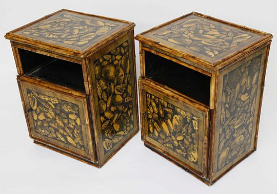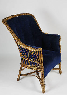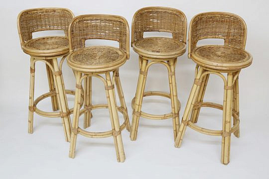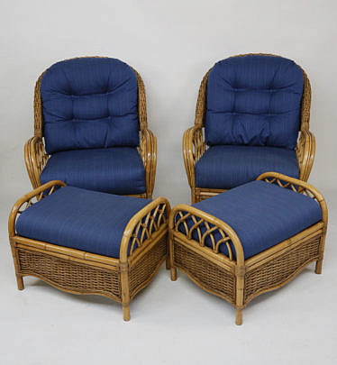 Pair of Braxton Culler Rattan Arm Chairs and Ottoman