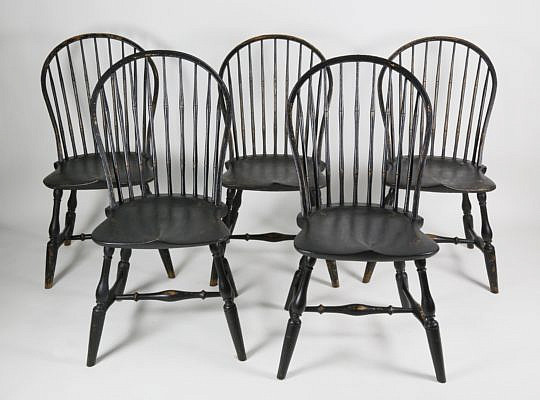 Set of Five Contemporary Rhode Island Style Bow Back Windsor Dining Chairs