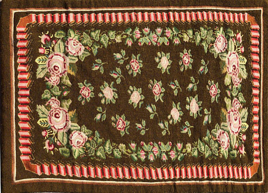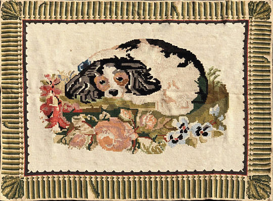 Spaniel on a Bed of Flowers Needlepoint Rug