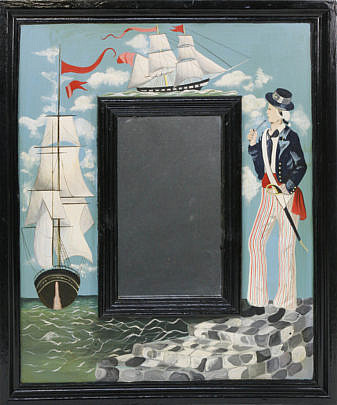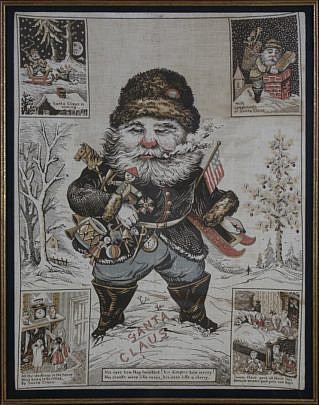 Framed Santa Claus Printed Linen Towel, 19th c.