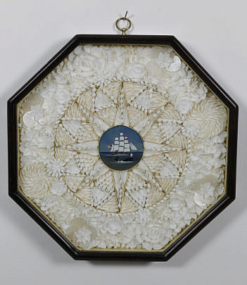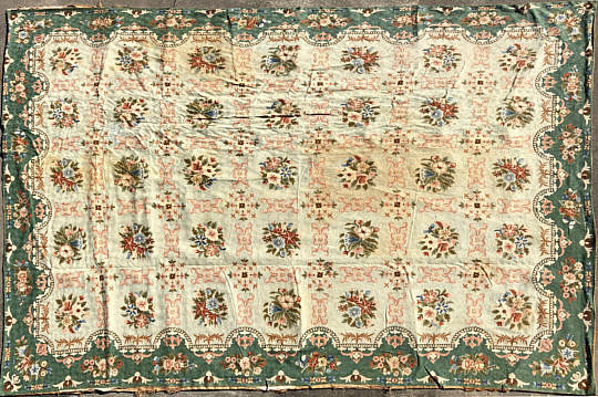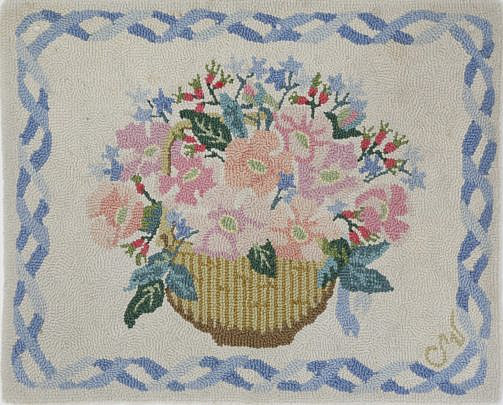 Claire Murray Oval Hooked Rug with Floral Design and Shell Border