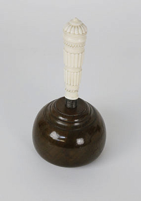 Whaleman Made Inlaid Mahogany and Whale Ivory Mushroom Cap Grip Walking Stick, circa 1850
