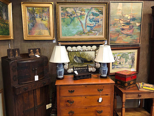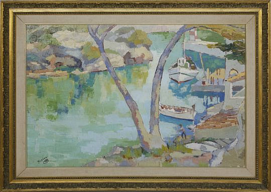 Ruth Haviland Sutton Oil “Green Hulled Fishing Boat Docked in Nantucket”