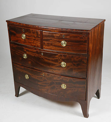 American Flame Birch Salesman’s Sample Chest of Drawers, circa 1825