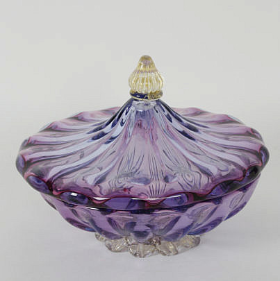 Venetian Hand Blown Lavender Glass Covered Bowl