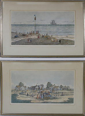 Roy Bailey Limited Edition Polychrome Woodcut, “Shucking Time, Nantucket”