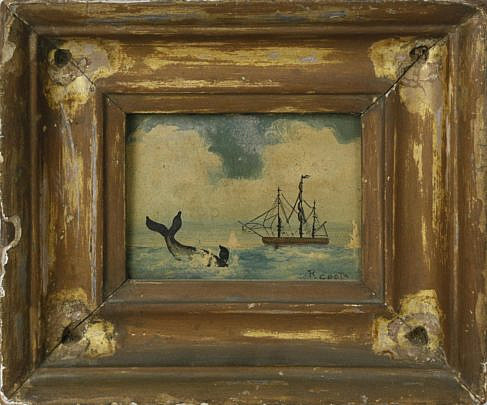 Primitive Oil on Panel Seascape “Arctic Whaling Scene”