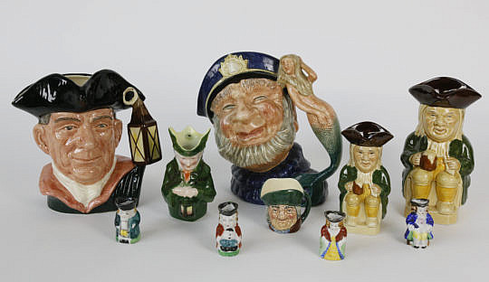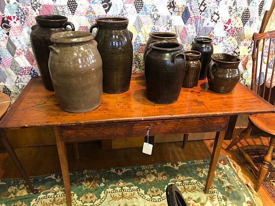 Collection of Eight Antique Brown Glazed Ceramic Crocks