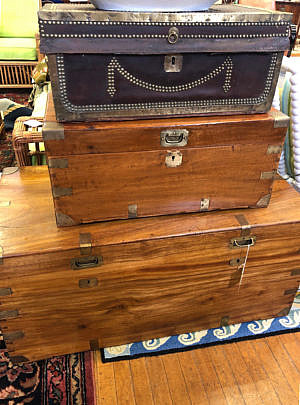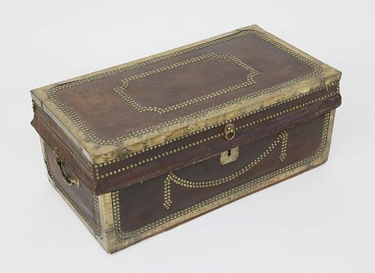 Chinese Export Leather and Brass Bound Camphorwood Trunk, 19th Century