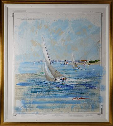 Jan Pawlowski Oil on Canvas “Sailing In Polpis Harbor”
