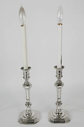 Pair of Vintage Chelsea House Silverplated Candlestick Lamps