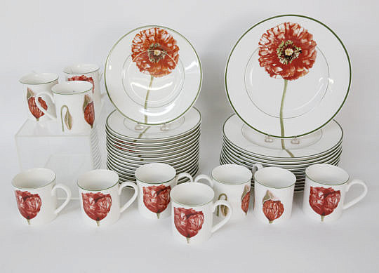 63 Piece Mottahedeh Vista Alegre Tobacco Leaf Dinner Service